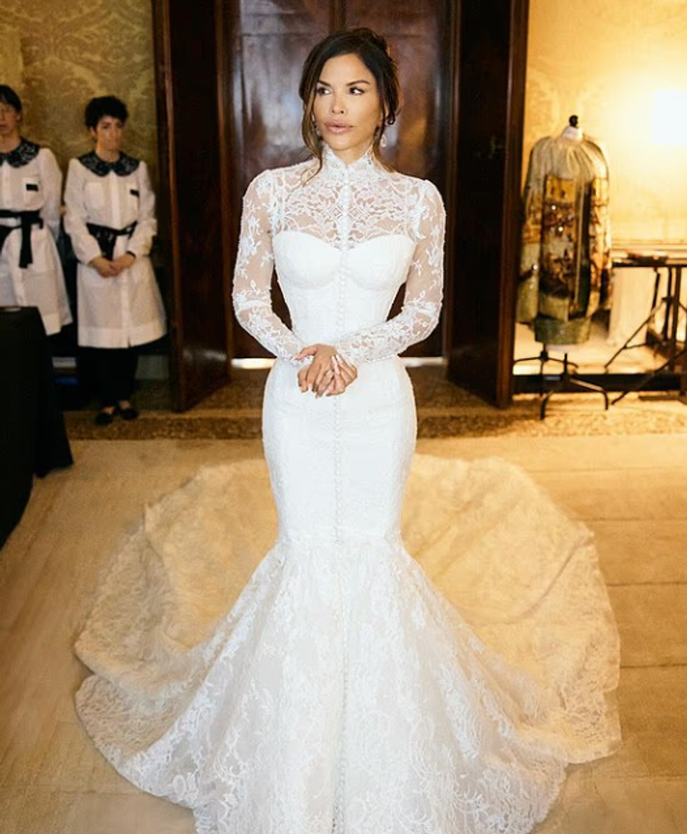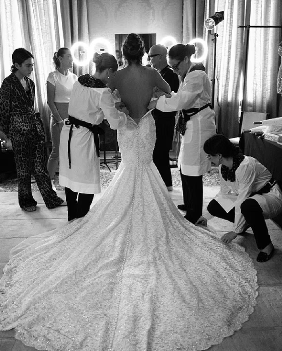 Në ditën e dasmës, ajo u shfaq me një fustan të bardhë të mrekullueshëm nga Dolce & Gabbana. E njëjta publikoi një foto në Instagram menjëherë pas ceremonisë, ku ndodhej pranë Bezos, duke shfaqur fustanin në të gjithë shkëlqimin e tij.