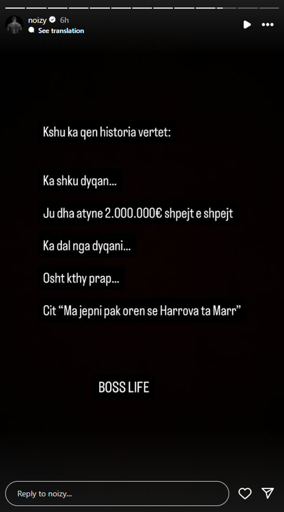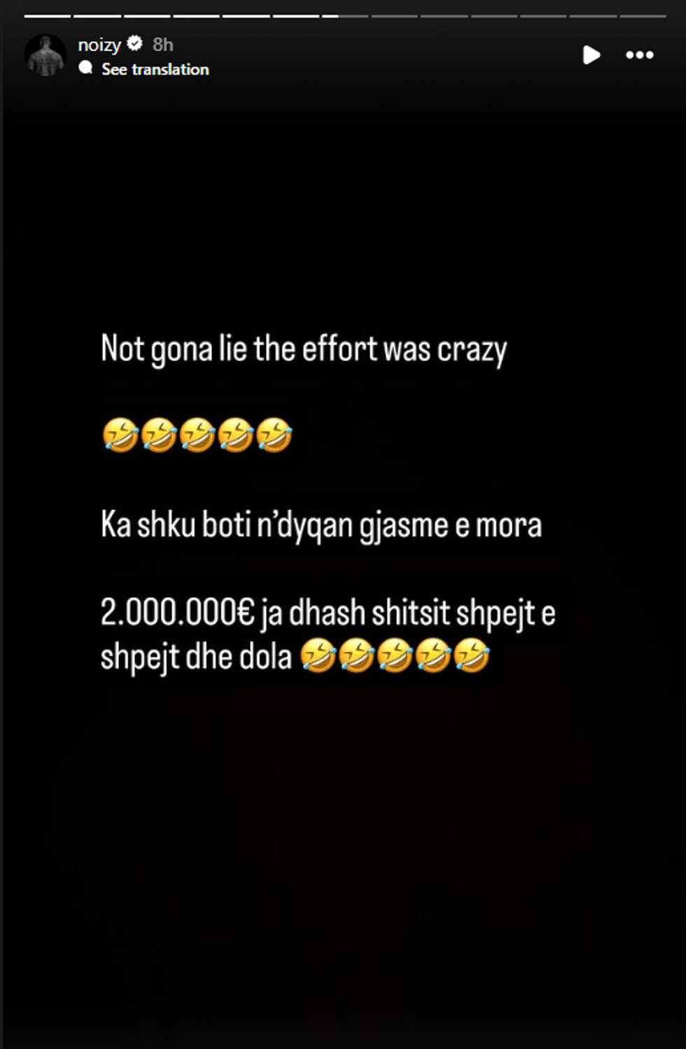 Kjo ngjarje duket se ka qenë shkak për reagimin ironik të Noizyt, i cili përmes disa postimeve në Instagram, ka komentuar me humor situatën.