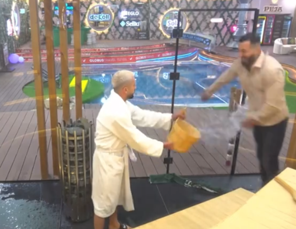 Nuk i linte të qetë, Gjesti i hedh kovë me ujë Jozit për ta larguar nga sauna