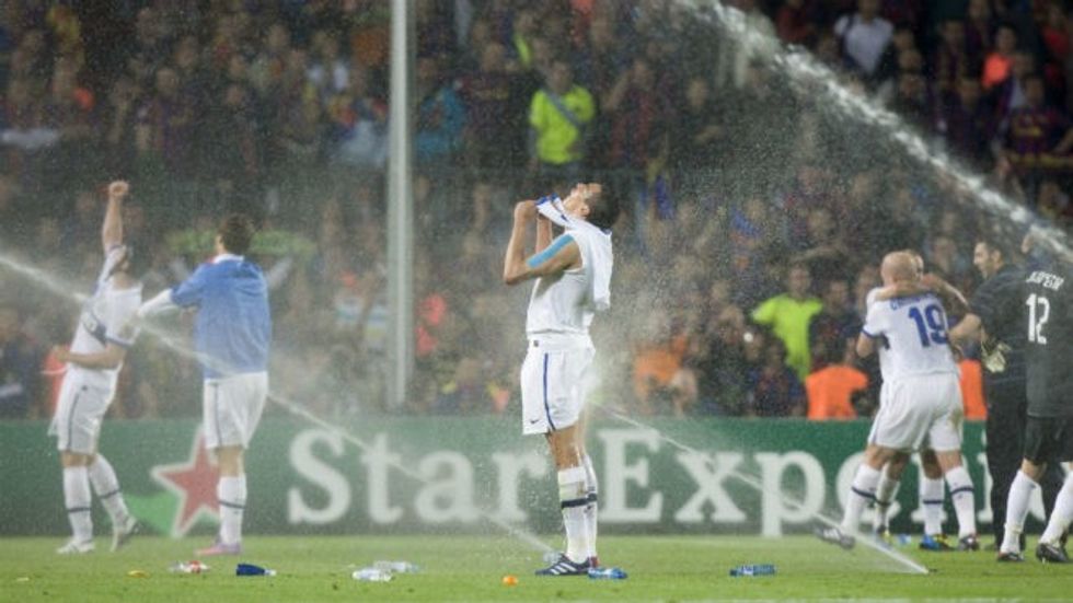 Pas vërshëllimës së fundit, lojtarët dhe stafi i Interit festuan në fushë pavarësisht se spërkatësit e Camp Nou ishin lëshuar, një moment që që atëherë është bërë legjendar.
