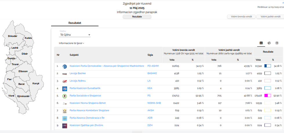 Gjithsej në të gjithë Shqipërinë janë 5225 kuti për votat brenda vendit, teksa kujtojmë se këtë vit ka votuar edhe diaspora.