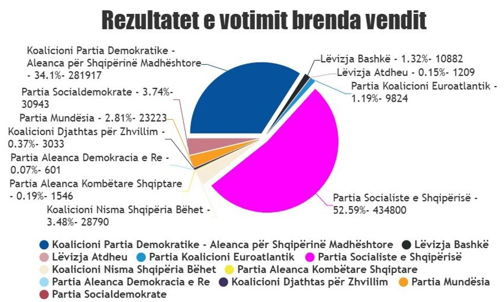 Sipas të dhënave të deritanishme, Partia Socialiste e Shqipërisë ka ka siguruar 52.67% të votave, ose 420,558 vota.
