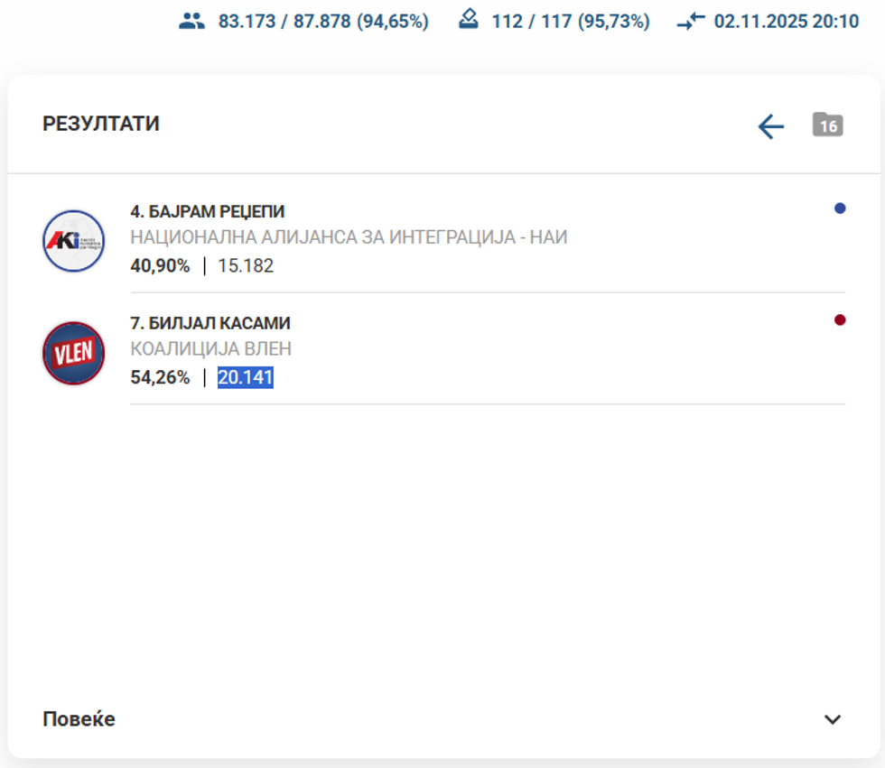 Me 94.65% e votave të numëruara:
