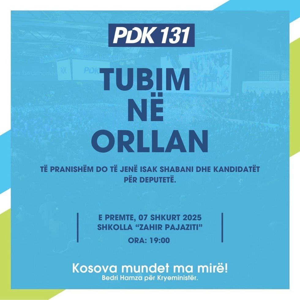 Ju ftojmë të merrni pjesë në tubimin e degës së Partisë Demokratike të Kosovës në Podujevë, ku do të prezantohet kandidati për deputet Isak Shabani dhe kandidatët e tjerë të PDK-së.