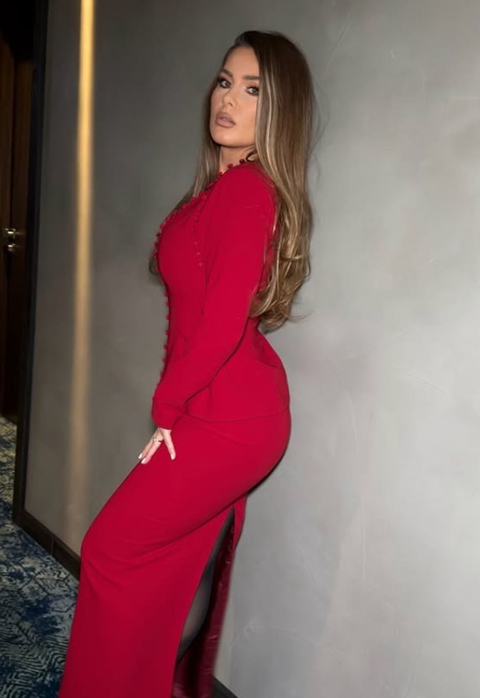 Aktorja kishte zgjedhur një veshje tërësisht në ngjyrë të kuqe, një kombinim që theksonte linjat trupore dhe i jepte paraqitjes një dozë të fortë elegance dhe autoriteti.