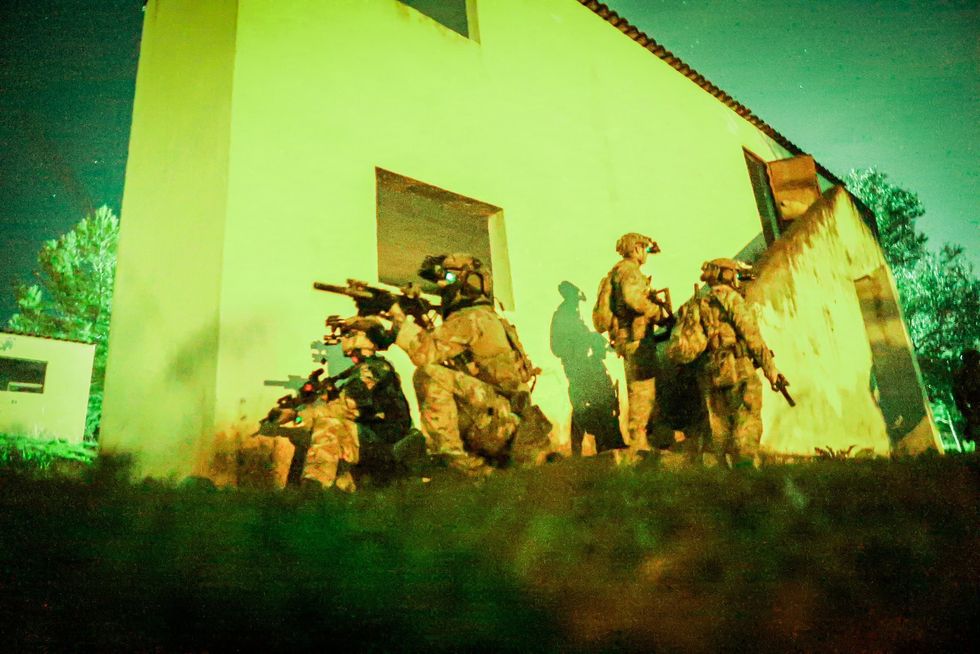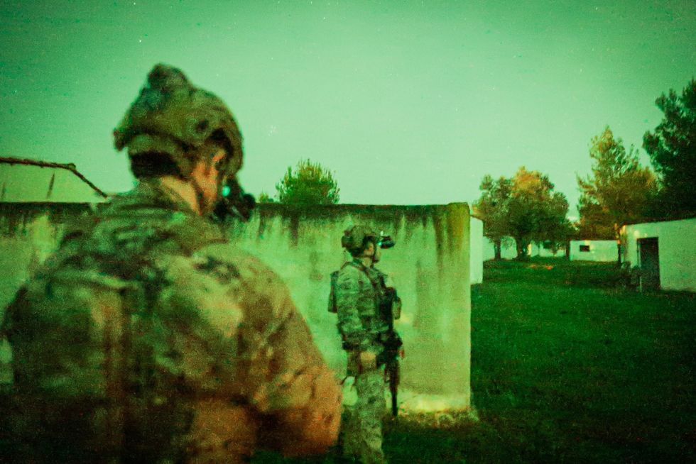 Nën errësirë dhe në koordinim me Aleatët tanë shqiptarë, Forcat e Operacioneve Speciale të caktuara në Komandën e Operacioneve Speciale të SHBA për Evropën (SOCEUR) zhvilluan një stërvitje gatishmërie për vendosje emergjente në bazën ushtarake në Zall Herr javën e kaluar.