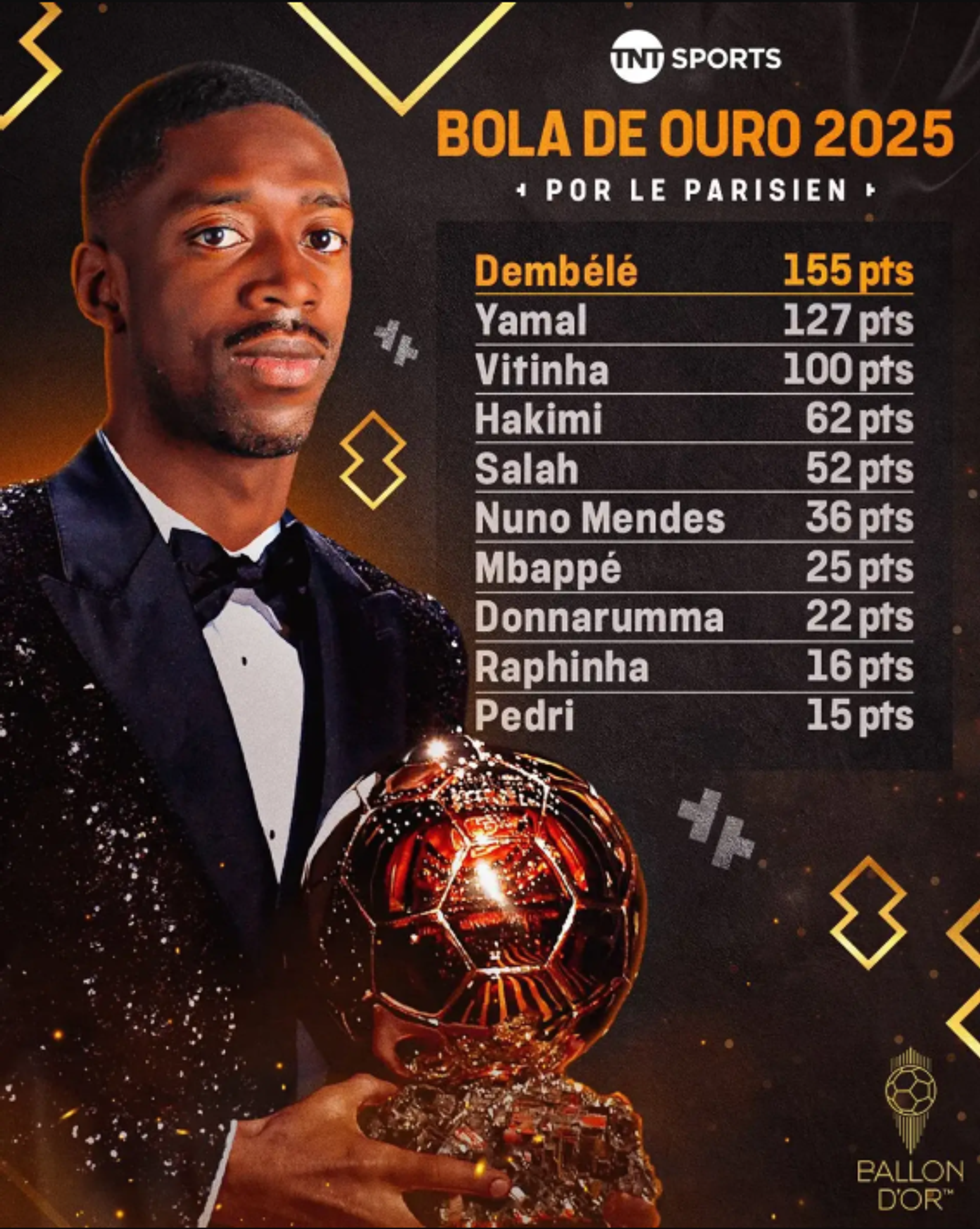 Sipas renditjejes të publikuar nga Le Parisien, Dembele aktualisht është favorit për të fituar Topin e Artë, me një total prej 155 pikësh, duke lënë pas talentin e Barcelonës, Lamine Yamal, i cili ka 127 pikë.