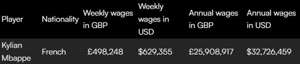 Nënshkrimi për Real Madridin me një kontratë pesë vjeçare, bëri që Mbappe të bëhet lojtari më i paguar i klubit me diku rreth 500 mijë euro në baza javore dhe me një pagë vjetore mbi 25 milionë euro.