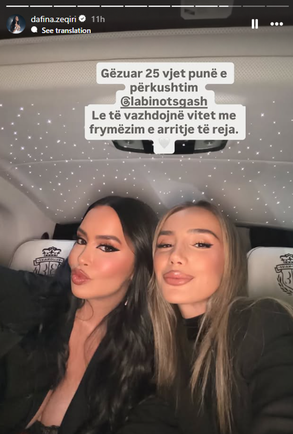 Në një postim të publikuar gjatë festës, artistja shkroi: “Gëzuar 25 vjet punë e përkushtim Labinot. Le të vazhdojnë vitet me frymëzim e arritje të reja".