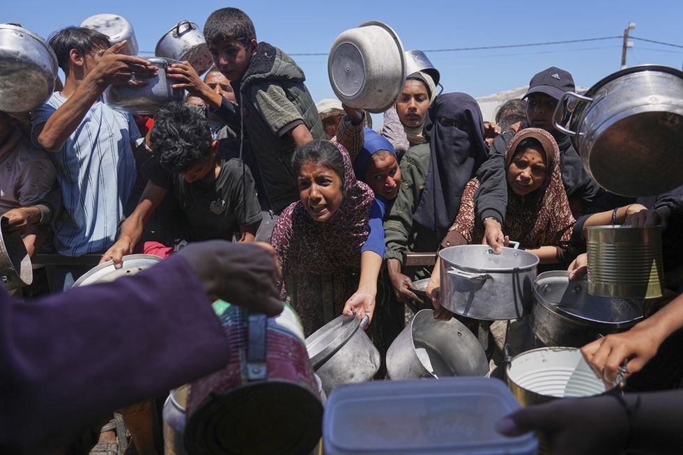 Sot në zonën Muwasi të Khan Younisit, banorët e Gazës kanë pasur vështirësi për të marrë ushqim të gatuar që shpërndahet nga një kuzhinë komunitare.