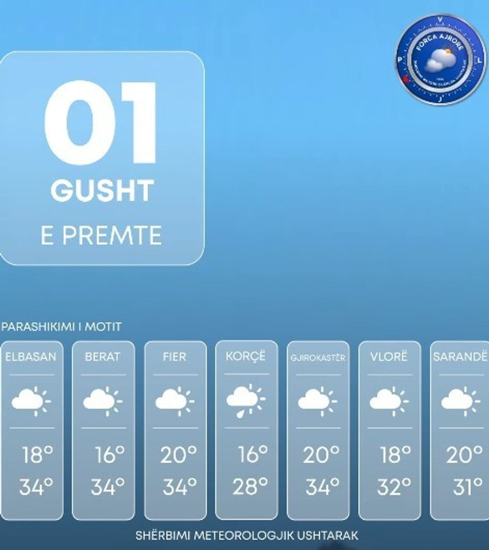 Shqipëria të premten do të jetë në ndikimin e kushteve atmosferike të qëndrueshme.