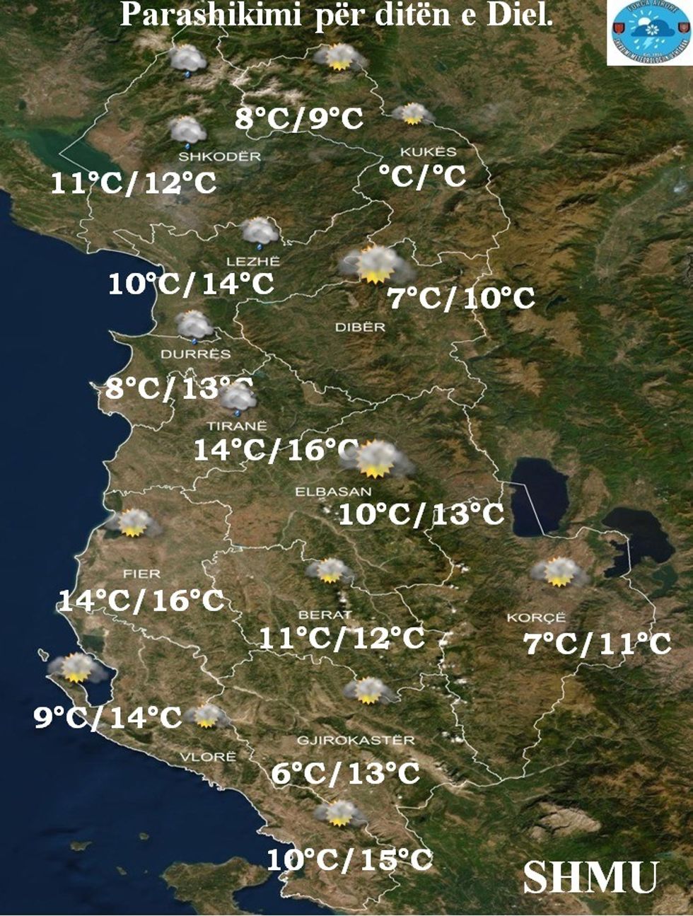 “Për sa i përket ditës së diel reshjet e herëpashershme të shiut me intensitet të ulët parashikohen të jenë prezent që në orët e para të ditës në pjesën më të madhe të territorit”, thuhet në njoftim.