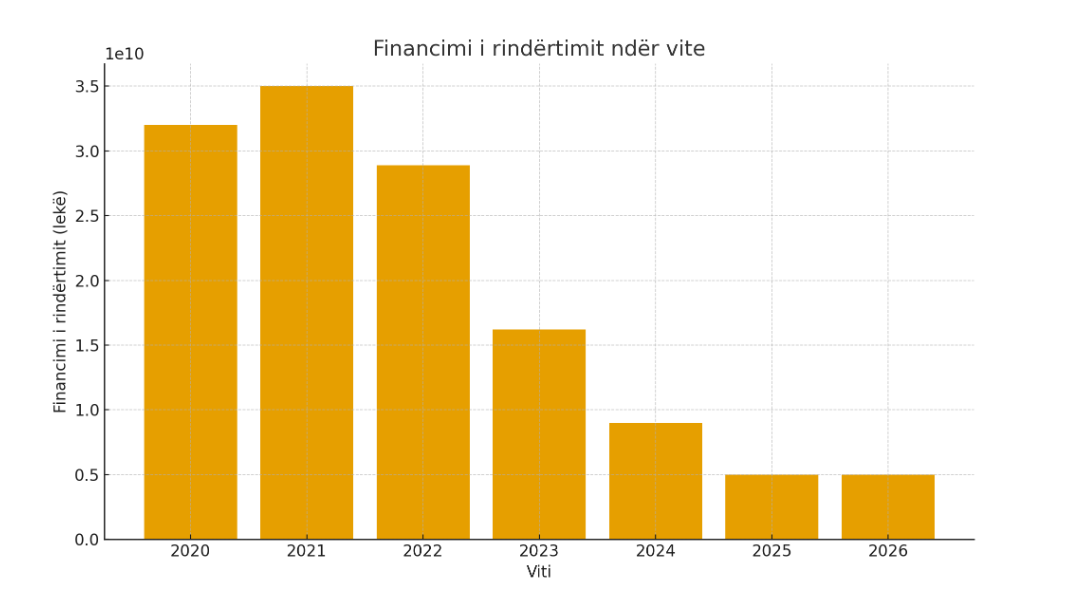 Pas gjashtë vitesh, me një faturë mbi 131 miliardë lekë shpenzimesh, qeveria do të ndalë financimin në fund të 2026. Buxheti i shtetit nuk planifikon më asnjë lek për rindërtimin pas vitit të ardhshëm.