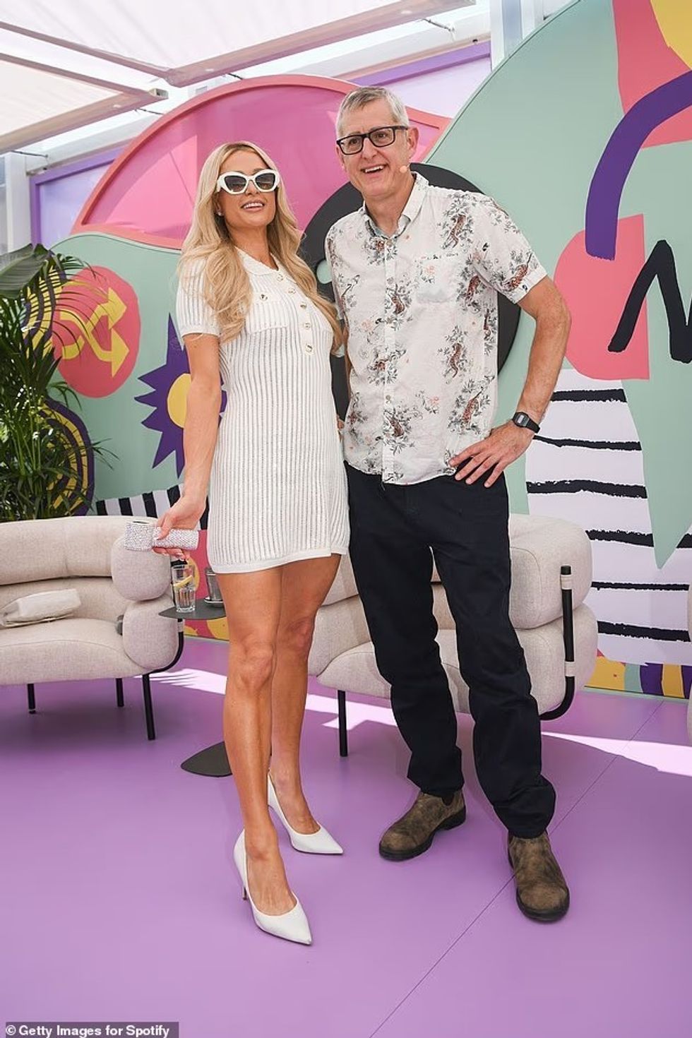 Paris Hilton u shfaq me stil në Cannes Lions 2025, ku u intervistua nga gazetari Louis Theroux në skenën e Spotify Beach.