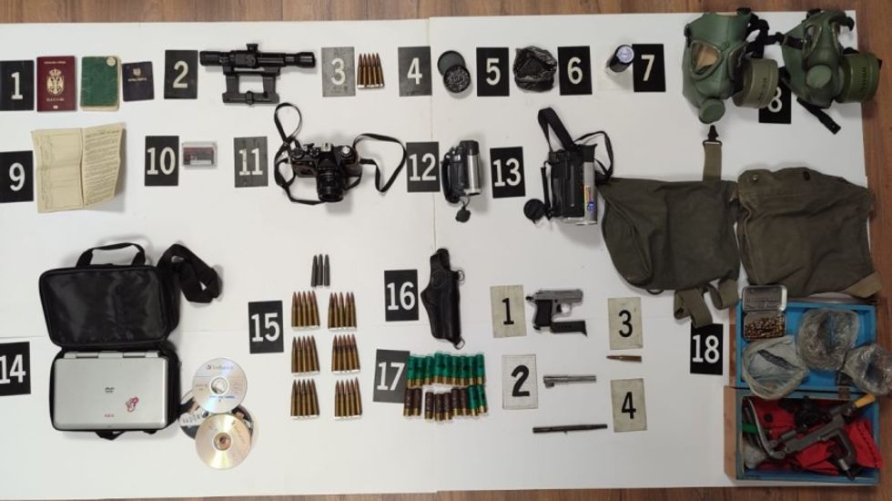 Sipas njoftimi bëhet e ditur se janë sekuestruar: 56 fishekë të kalibrave të ndryshëm, municion për pushkë ajrore, 1 optik për armë të gjatë, 1 kuti për mbushje të municionit, 1 fotrollë për pistoletë, 2 gaz-maska, 2 video-kamera dhe 1 video-kasetë e vogël, dokumente të ndryshme, 1 foto-aparat, 1 lexues (DVD), 1 vulë të rrumbullakët.