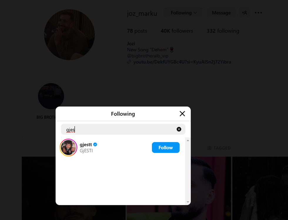 Pas gjithë asaj buje, Joz Marku 'ndjek' llogarinë e Gjestit në Instagram