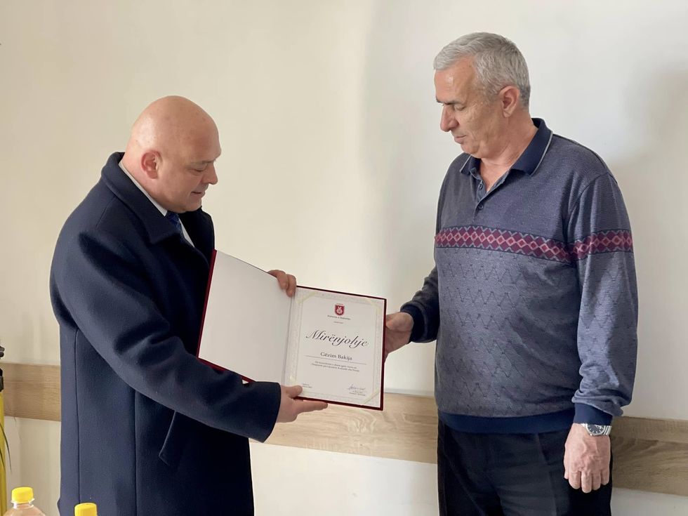 Gjatë ceremonisë së pensionimit, i pranishëm ishte edhe Kryetari i Komunës së Gjakovës, Ardian Gjini, i cili ndau mirënjohje për gjeodetin Bakija, duke e falënderuar atë për dedikimin, përpjekjet dhe kontributin e tij të çmuar në shërbim të qytetarëve dhe institucionit komunal.