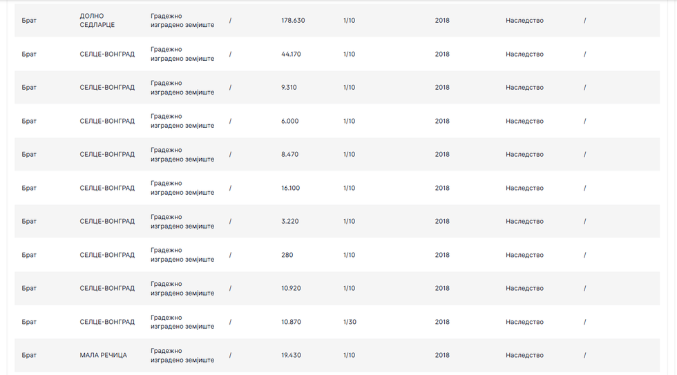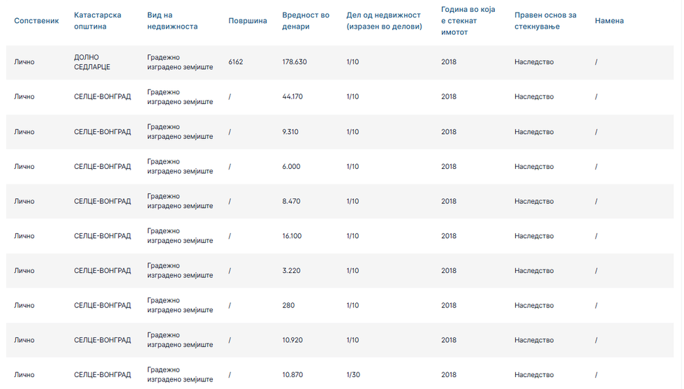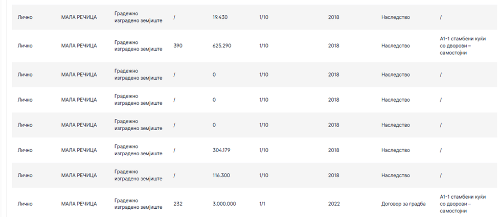 Si dhe një tokë tjetër poashtu në Reçicë të Vogël, prej 232 m2, në vlerë prej 3.000.000 denarëve (48755 euro).