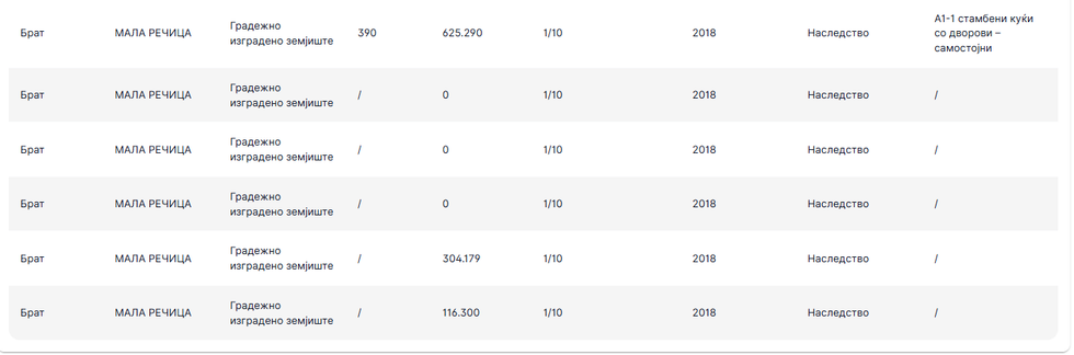 Poashtu ka deklaruar dhe 17 prona - tokë ndërtimore që janë në pronësi të vëllaut të tij.