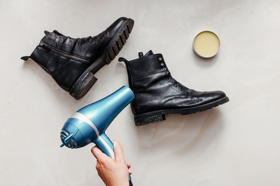 Filloni t’i nxehni këpucët me tharëse flokësh dhe me atë rast lëvizni gishtat e këmbëve në mënyrë që t’i ndihmoni zgjerimit të këpucës.
