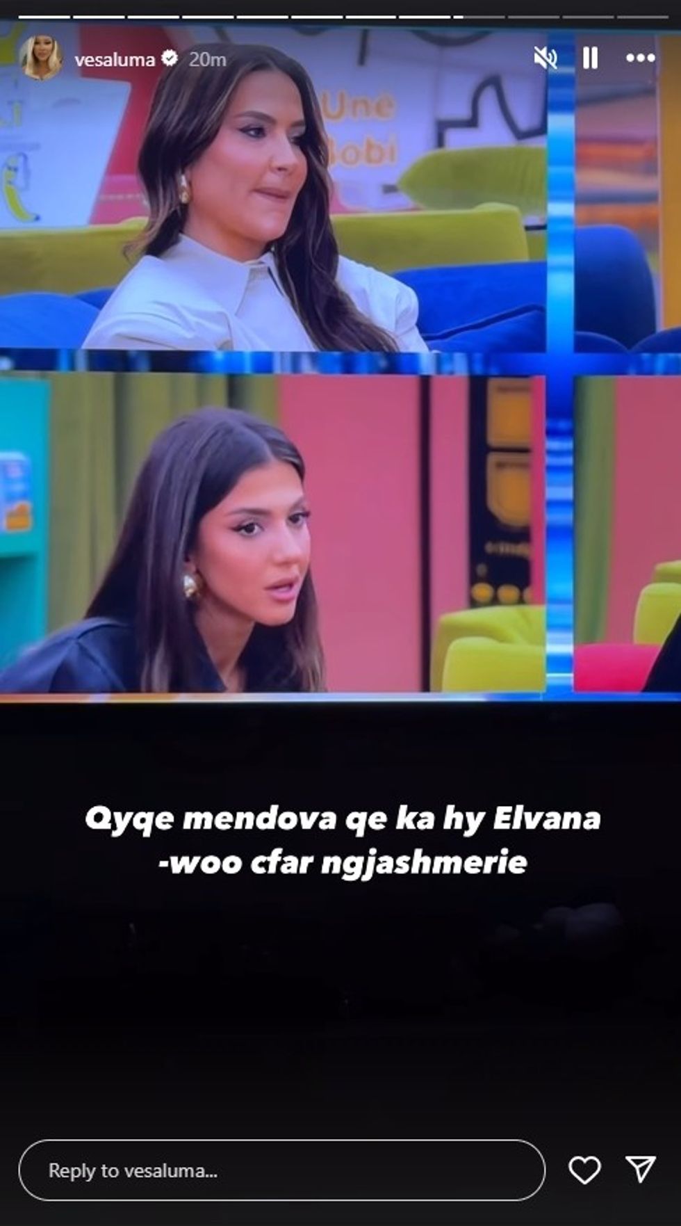 Madje, edhe këngëtarja Vesa Luma e vuri re këtë detaj dhe nuk ngurroi të reagojë në Instagram. Ajo publikoi një story ku shkroi me habi: "Qyqe, mendova që ka hyrë Elvana! Uau, çfarë ngjashmërie!".