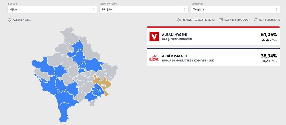 Ky rezultat i konfirmon avantazhin e qartë të Hysenit dhe e vendos atë në krye të komunës së Gjilanit për mandatin e ardhshëm.
