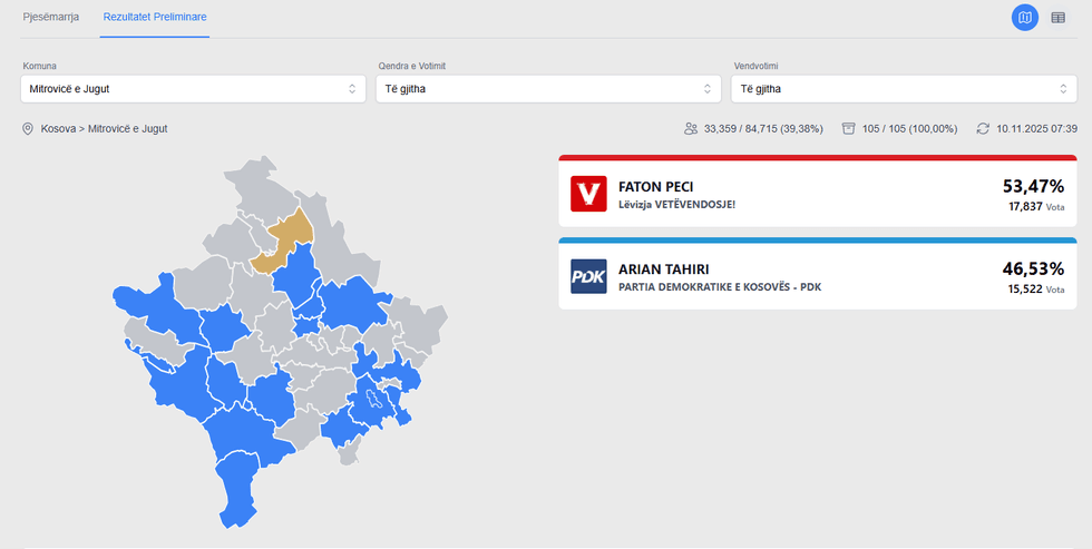 Përfundon numërimi në Mitrovicë të Jugut - Faton Peci del fitues me mbi 53% të votave