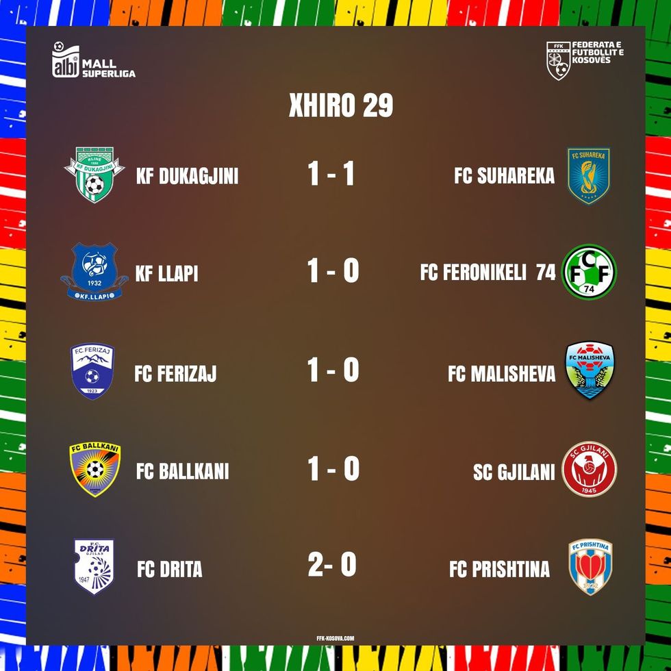 Ka përfunduar xhiro e 29-të në elitën e futbollit kosovar, xhiro e cila u zhvillua në mesjavë.
