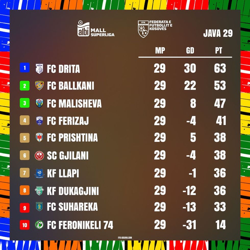 Përfundon xhiro e 29-të në Albi Mall Superligë: Drita marshon drejt titullit, Ballkani vazhdon ndjekjen - Ferizaj më e qetë se skuadrat e tjera