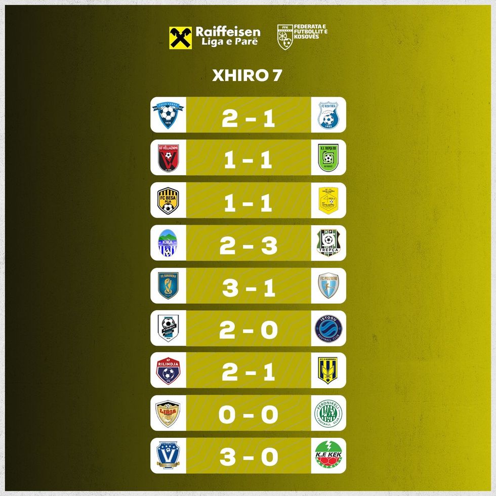 Ka përfunduar xhiro e shtatë në Ligën e Parë të Kosovës, me dy derbi që ishin në program për t'u zhvilluar.