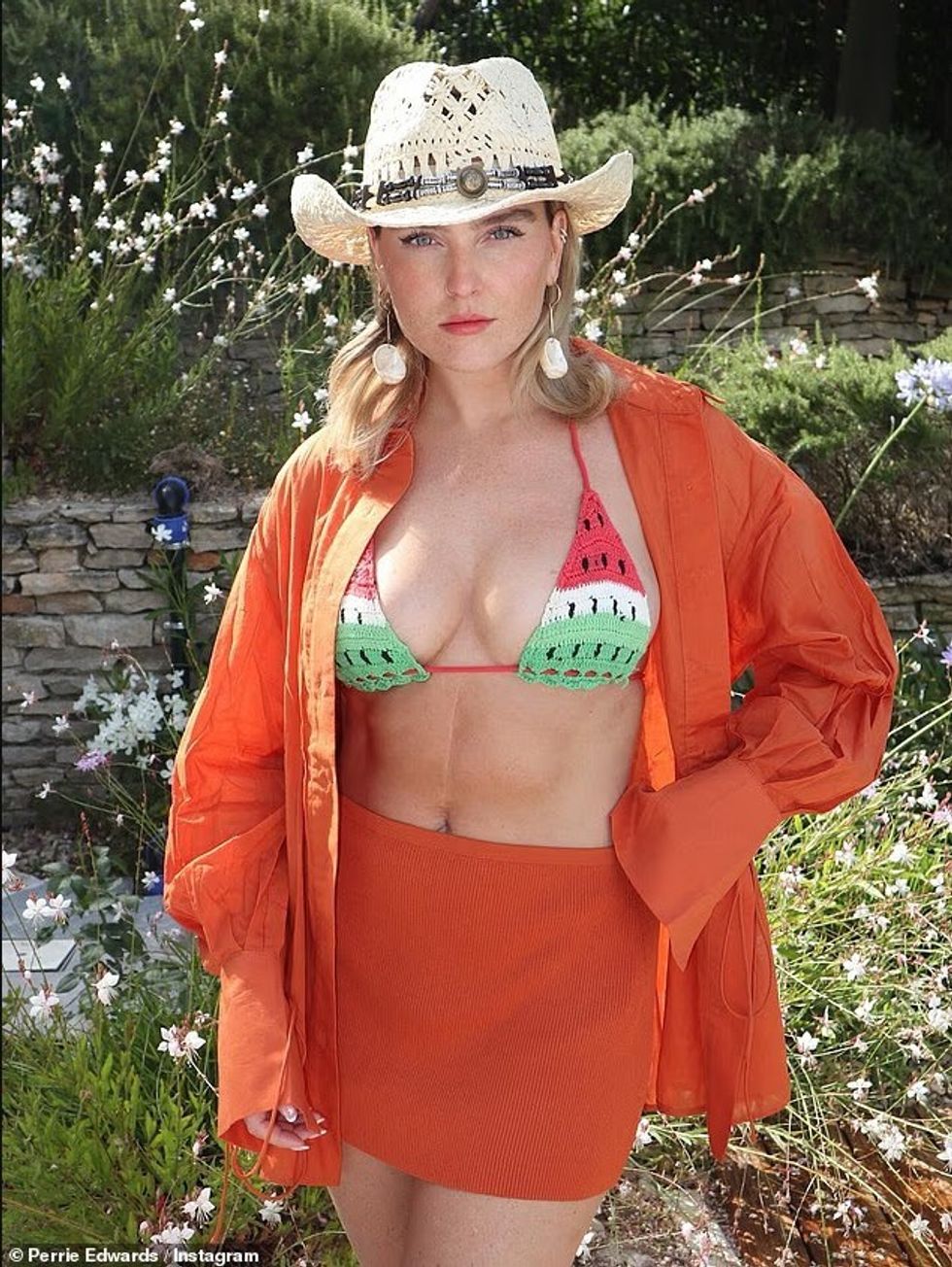 Perrie Edwards tërhoqi sërish vëmendjen e ndjekësve me një set fotografish nga pushimet, ku shfaqet me bikini shalqiri të punuar me grep, duke kombinuar dukjen me një fund të shkurtë dhe kapelë kauboji.
