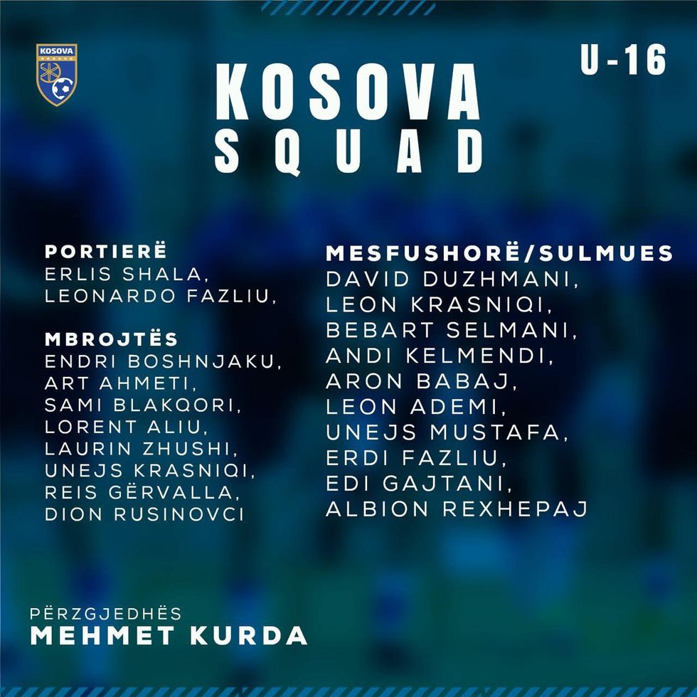 Përzgjedhësi i Kombëtares së Kosovës U16, Mehmet Kurda, ka publikuar listën e Dardanëve për turneun zhvillimor të UEFA-s, që do të zhvillohet në Tiranë prej 20 deri më 25 prill.