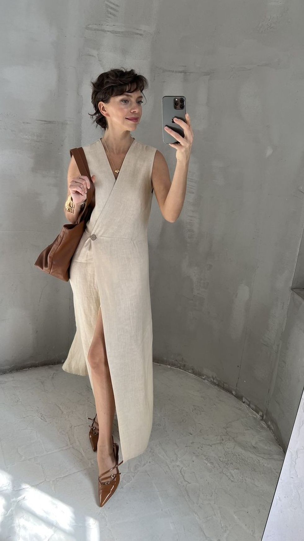 Një variant tjetër i fustanit me palosje është modeli me nyje. Këtu materiali nuk mbivendoset, por thjesht vendoset në mënyrë natyrale.