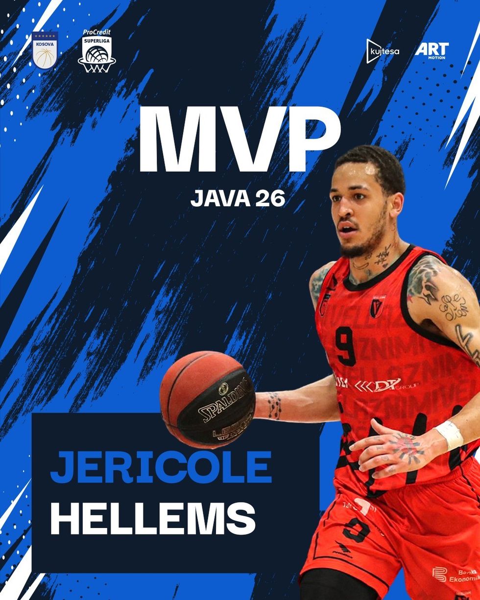 Paraqitje të jashtëzakonshme dhuroi Jericole Hellems ndaj prishtinasve me 42 pikë, duke shtuar edhe tri kërcime e tri asistime, ku e kishte indeksin 36 apo më të lartin e kësaj xhiro. Ai shpallet MVP i javës pas kësaj super paraqitje.