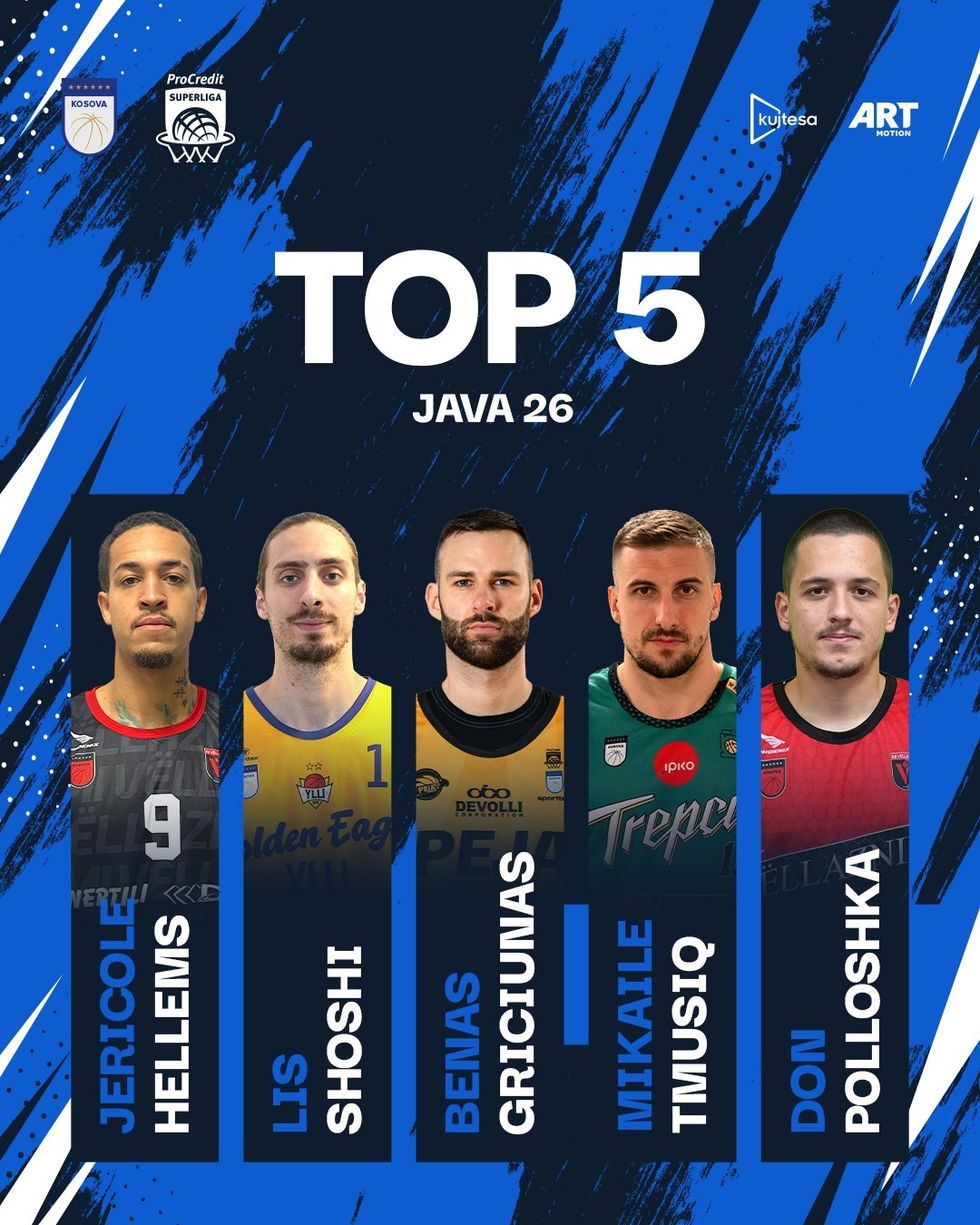 Mikaile Tmusiq (Trepça) 15 pikë, 4 kërcime, 6 asistime, 22 indeksi