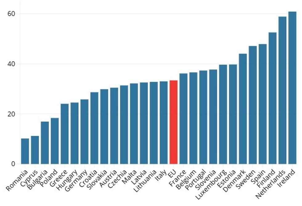 Përqindja më e lartë u regjistrua në Holandë me 53 për qind, në Irlandë me 52 për qind dhe në Finlandë me 46 për qind.