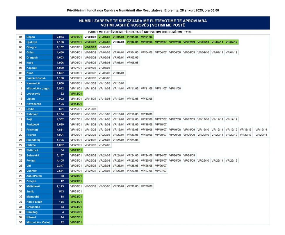 Numri i pakove të supozuara me fletëvotime dhe që janë aprovuar nga KQZ, pas procesit të vlerësimit, është më shumë se 63 mijë sosh.
