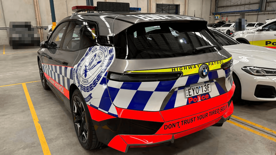 Fotot e shpërndara në rrjetet sociale, shfaqin BMW iX të veshur me shenja patrullimi të autostradës së policisë të New South Wales dhe një shirit drite me ngjyrat blu dhe të kuqe.