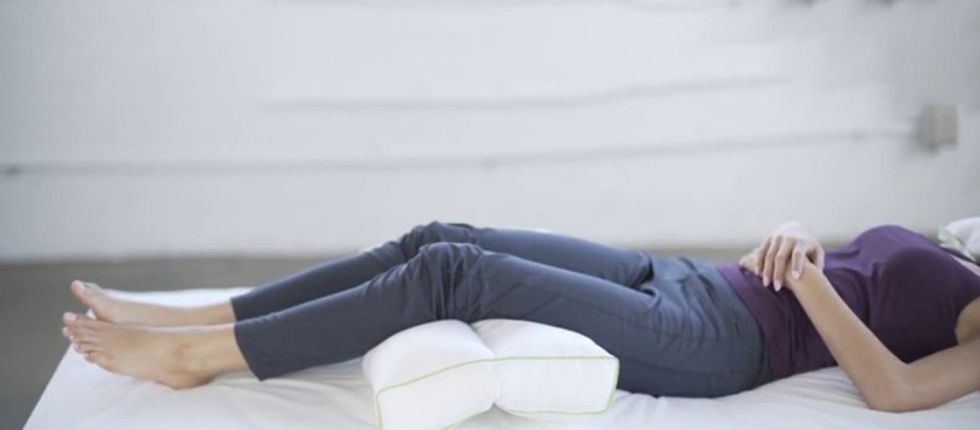 Fjetja në shpinë me jastëk nën gjunjë
