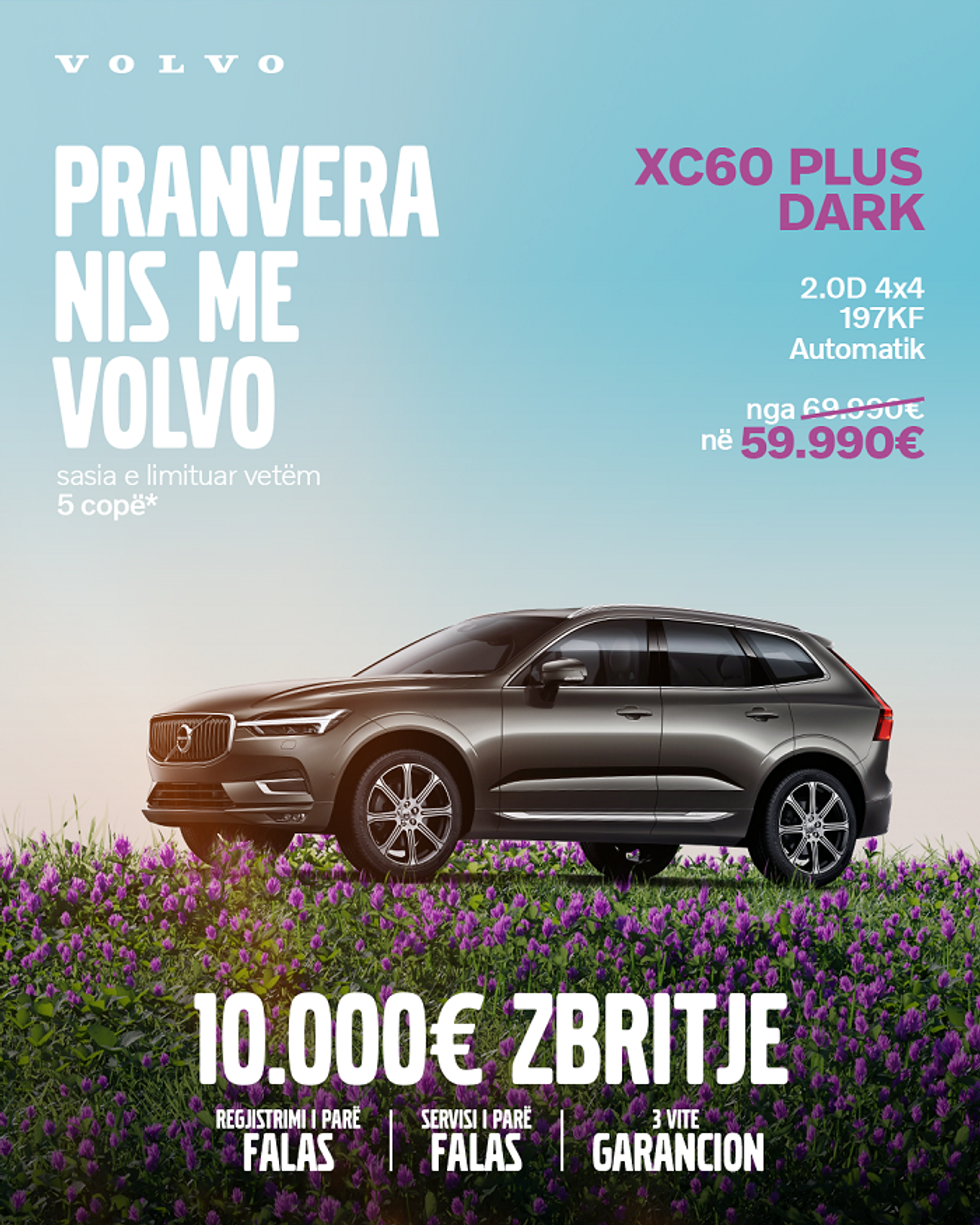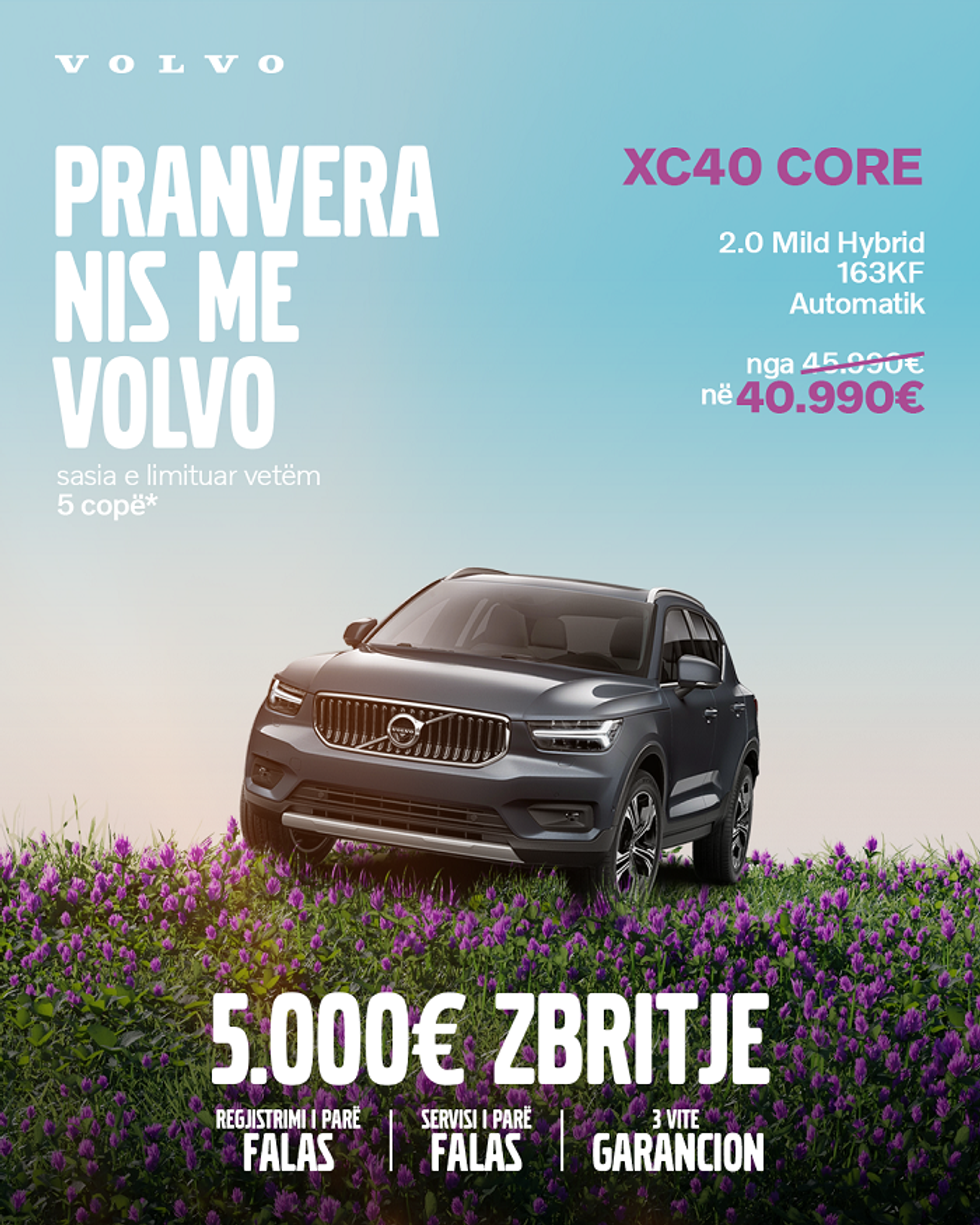 Ofertë e limituar! Kampanja “Pranvera nis me Volvo” është e vlefshme për një periudhë të kufizuar, me sasi të limituara, ndaj mos e humbisni këtë mundësi unike.