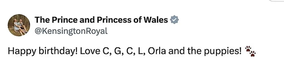 Kjo vjen pas një tjetër urimi për Princin William, të ndarë më herët nga babai i tij, Mbreti Charles, i cili publikoi një foto të papublikuar më parë të djalit të tij, së bashku me një mesazh të përzemërt në llogarinë zyrtare të Familjes Mbretërore në X. /Telegrafi/