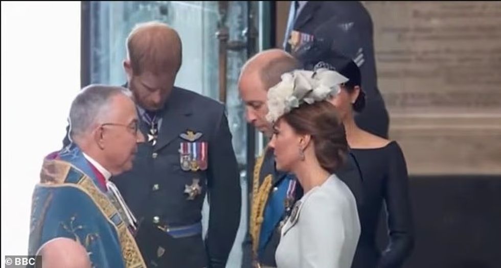 Teksa Kate përshëndeste mikpritësit në Westminster Abbey, Princi William u vendos mes saj dhe Meghan, gjest që sipas ekspertes Judi James, duke njohur marrëdhëniet e tensionuara mes dy grave, ngjan si një “mburojë njerëzore”.