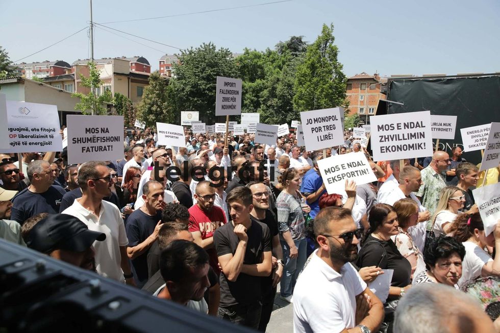 Përfaqësues të bizneseve nga e gjithë Kosova kanë protestuar sot në sheshin “Skënderbeu” në Prishtinë, kjo ishte protesta e dytë e organizuar nga bizneset, të cilat po kundërshtojnë daljen në tregun e lirë të energjisë elektrike.