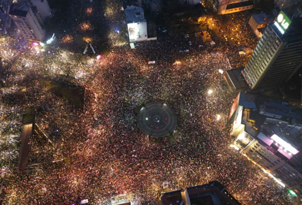 - 15/03/2025 18:51-Kjo pamje tregon se sa masive është protesta në Beograd