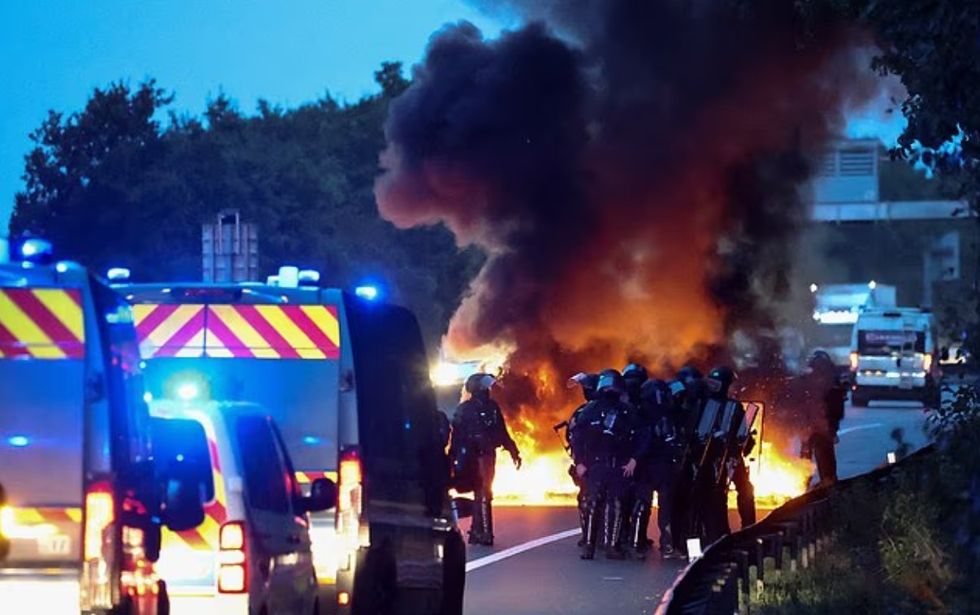 Ministri i Brendshëm, Bruno Retailleau tha se një autobus u vu në flakë në qytetin perëndimor të Rennes dhe se dëmtimi i një linje elektrike bllokoi trenat në një linjë në jugperëndim.