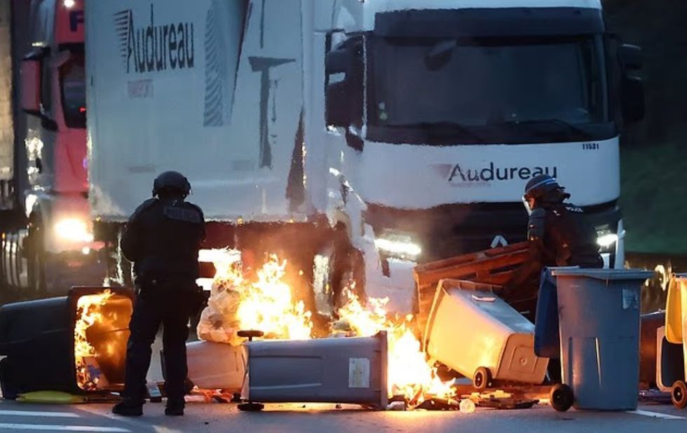 Franca u zhyt në kaos rrugësh këtë mëngjes, ndërsa një fushatë antiqeveritare me greva dhe protesta "Blloko gjithçka" nisi në të gjithë vendin.