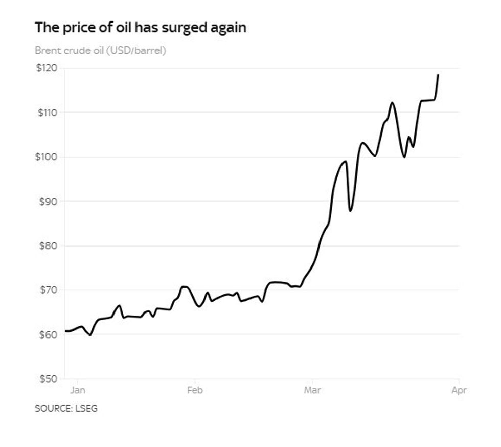 - 31/03/2026 16:58 - Preço do petróleo sobe para perto do nível mais alto desde a guerra