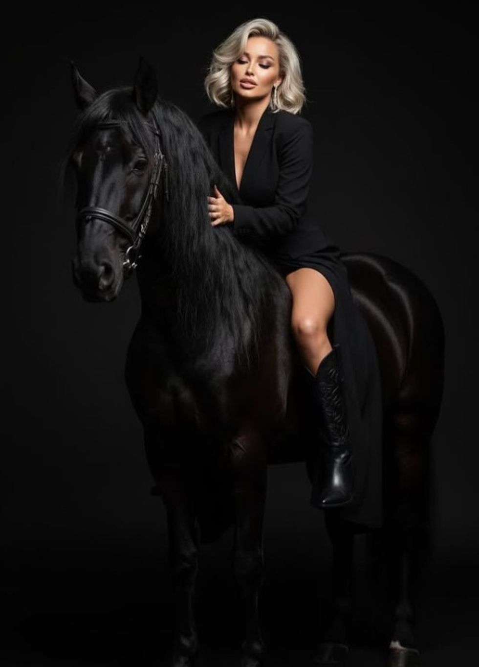 Në disa prej fotografive, ajo shihet e veshur me stil më të thjeshtë, ndërsa në të tjera paraqitet në kombinime më klasike, duke reflektuar faza të ndryshme të stilit të saj personal para se të bëhej pjesë e skenës mediatike.