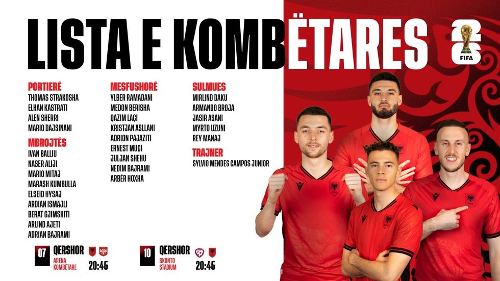 Kombëtarja shqiptare do të zhvillojë dy ndeshjet e radhës në kuadër të kualifikueseve për Kupën e Botës 2026, ndaj Serbisë dhe Letonisë.