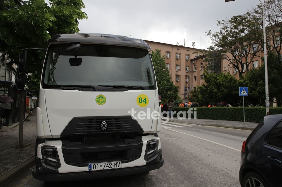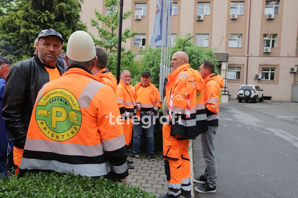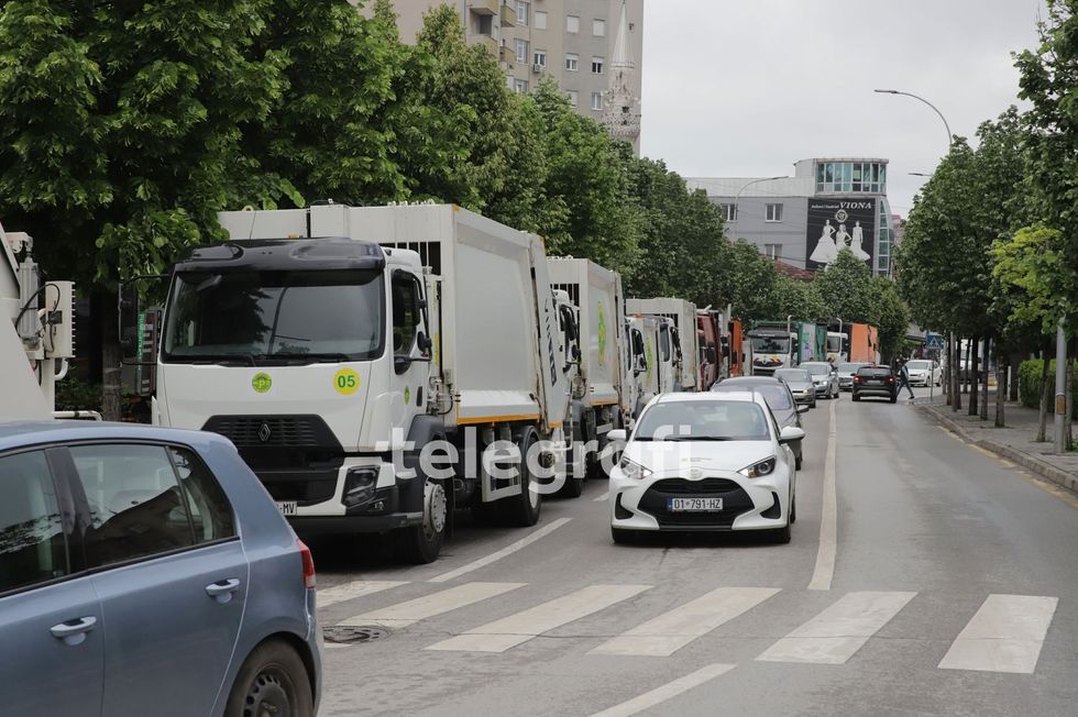 Punëtorët e kompanisë “Pastrimi” janë duke mbajtur grevë para objektit të Komunës së Prishtinës, duke pozicionuar përballë objektit edhe kamionët për grumbullimin e mbeturinave.